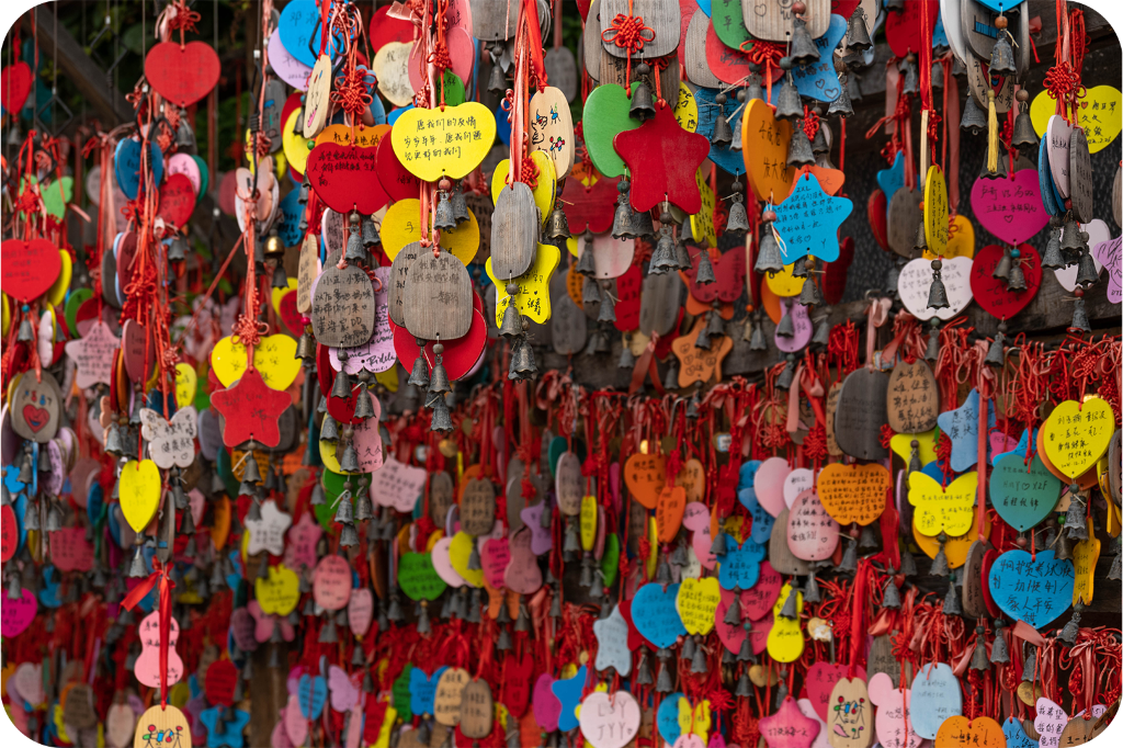 而理想广场的另一边,则汇聚了人们满满的心愿和祝福。