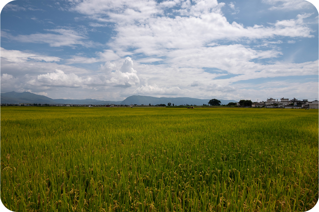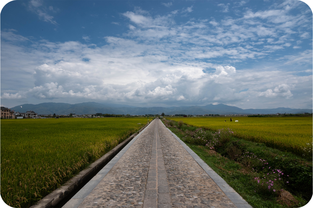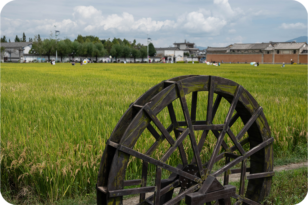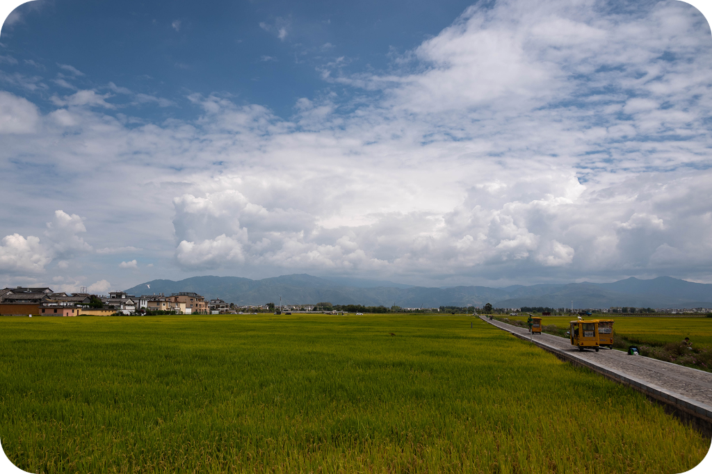 喜洲古镇里最为知名的景色,还是要数这片屡屡出现在网红照片中的稻田。