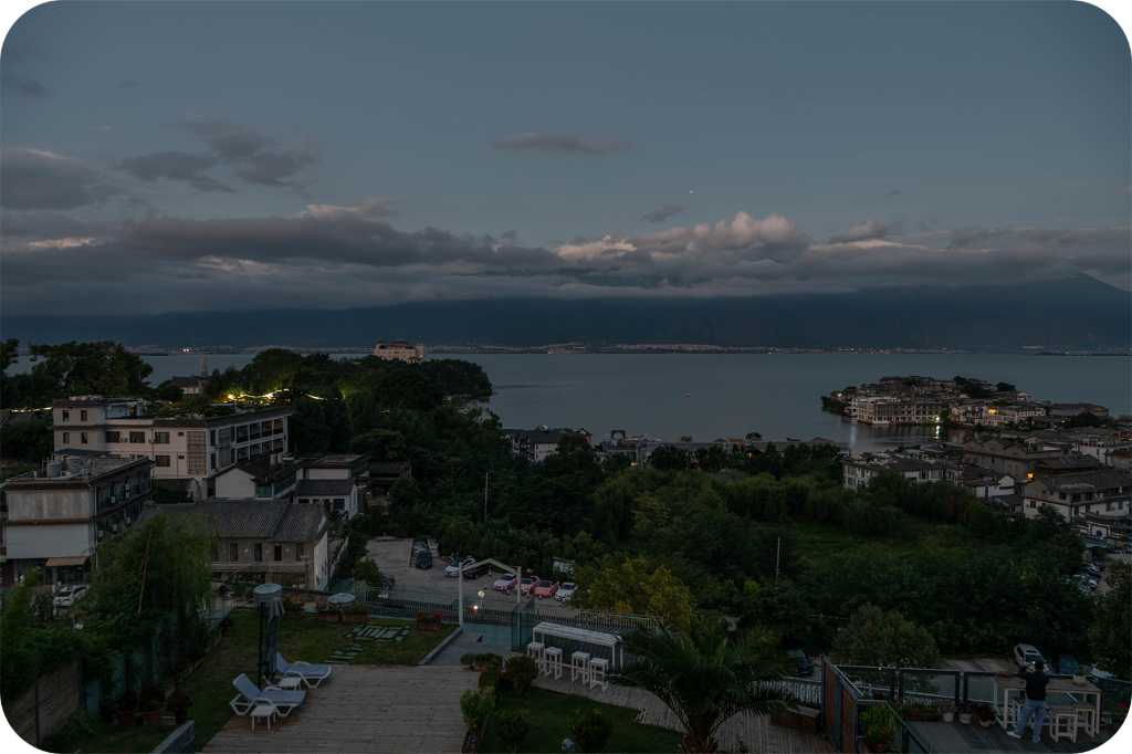 回到客栈已接近晚上八点,多亏了云南这边日落很晚,让我得以在这个时间还能拍下这幅眼前的美景。