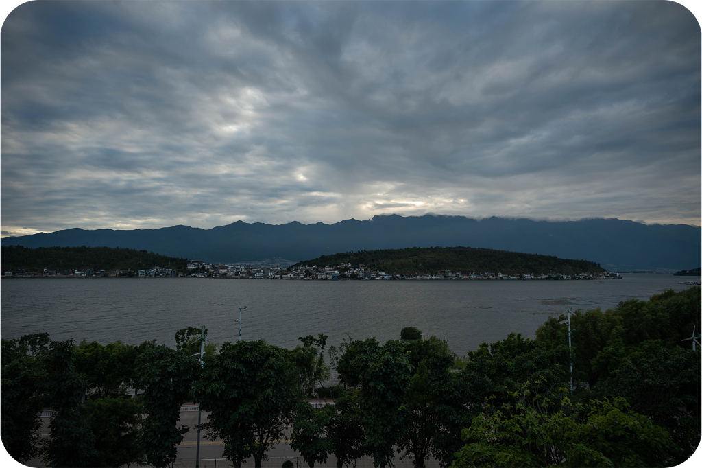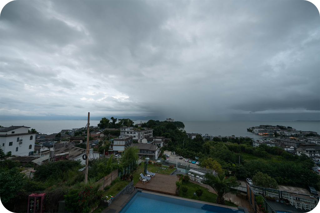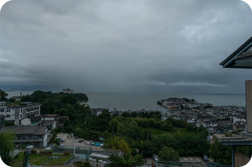 一大早,外面就下着小雨,洱海上方的降雨云团,也正以肉眼可见的速度移动着。