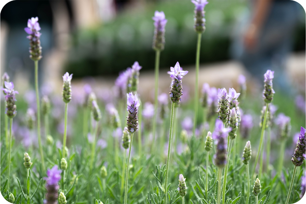 花卉大道上的花坛内,种植了满是紫色的薰衣草。