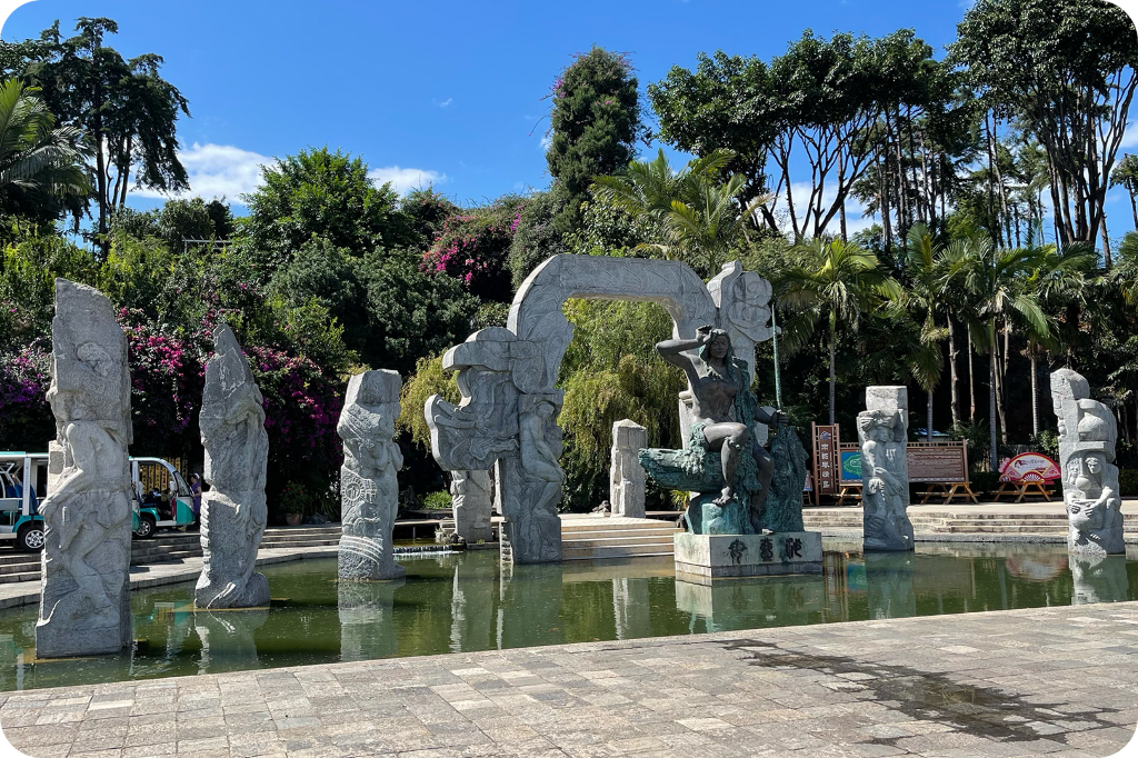 走进南诏风情岛,首先看到的是一组沙壹母群雕。