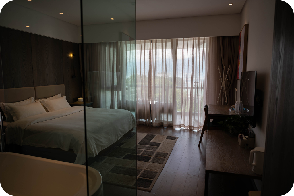 来到客房,这里同样是一个非常出片的地方,设计风格很有档次。