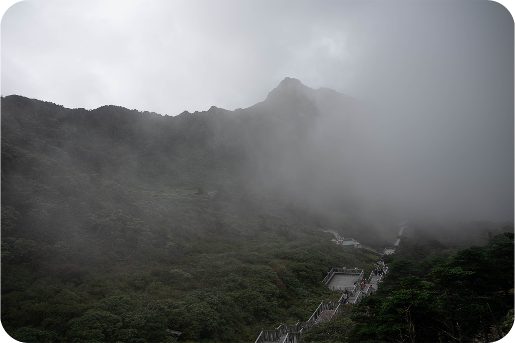 距离山顶越近,云雾缭绕的景观也就越明显。