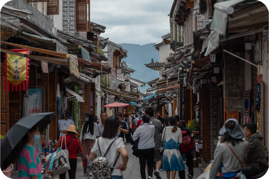 不同于大理古城的大量商业化,这里还是保存着比较原生态的街道和人文气息,不过节假日的主干道上依然还是游人如织。
