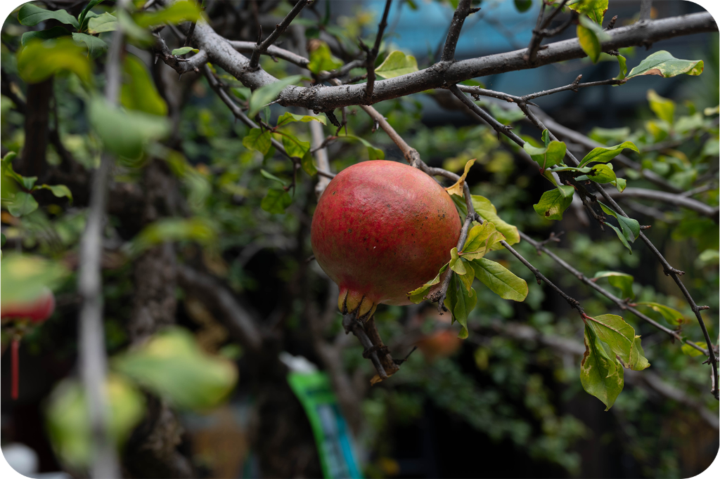四合院中间还有一棵石榴树,果实已经结得很大了。