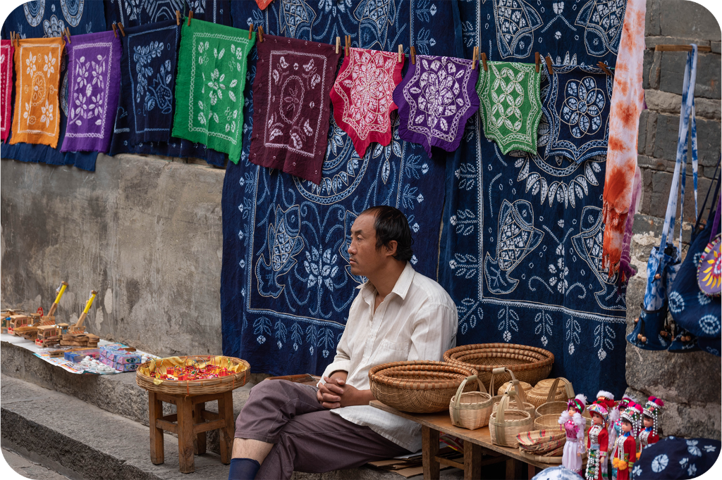 路边的小摊上,淳朴的白族人民正在等待游客的到来。