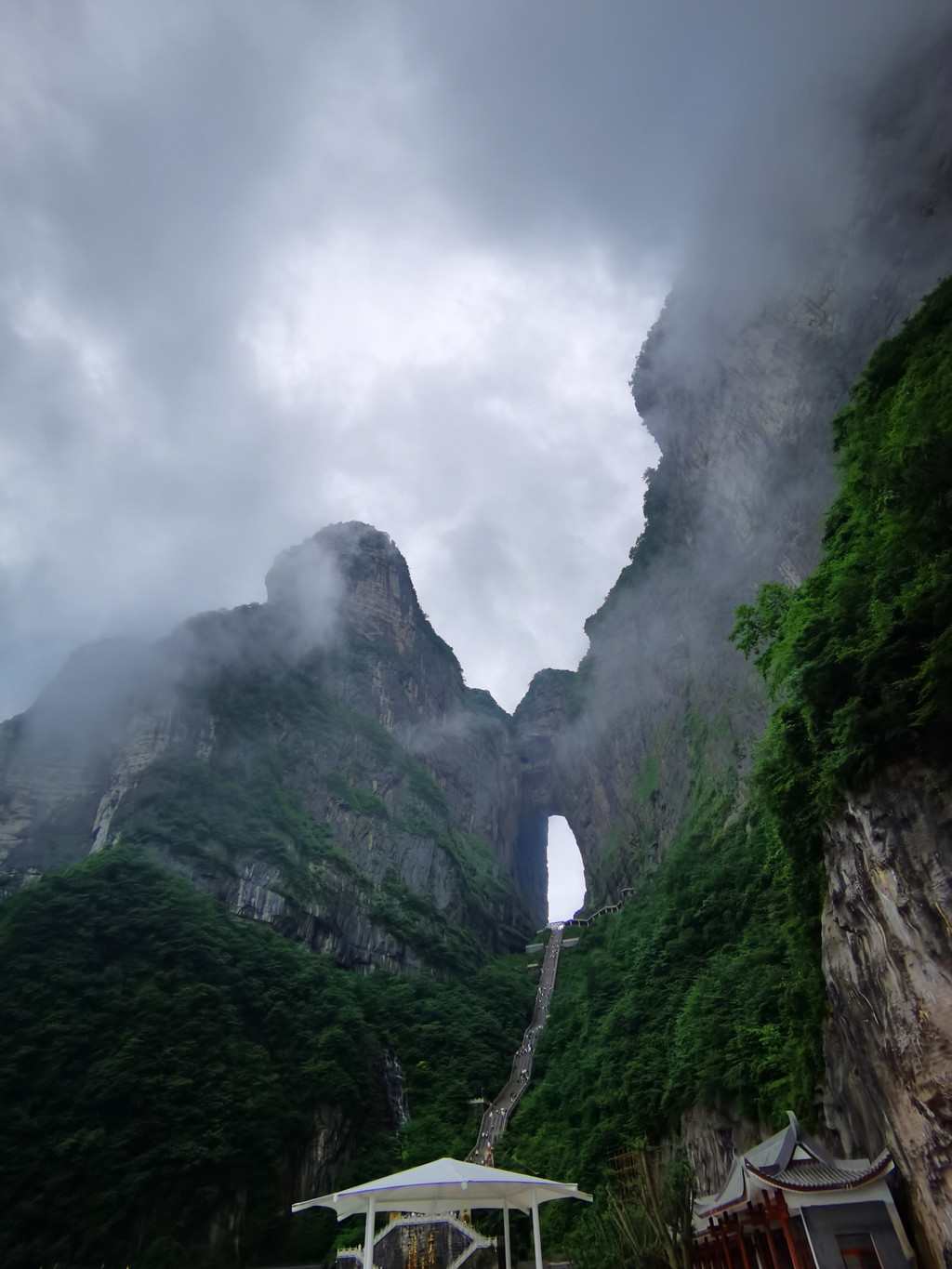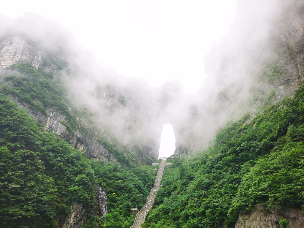 其实爬一次999阶台阶也挺好的,中间休息个三五次的,一股劲儿也就上去了。我和我家8岁的姑娘是爬上去的,我歇了五六次,我姑娘几乎是一口气上去的,看着她的背影逐渐变小最后消失在天门洞下,我直感慨“还是年轻好啊”!