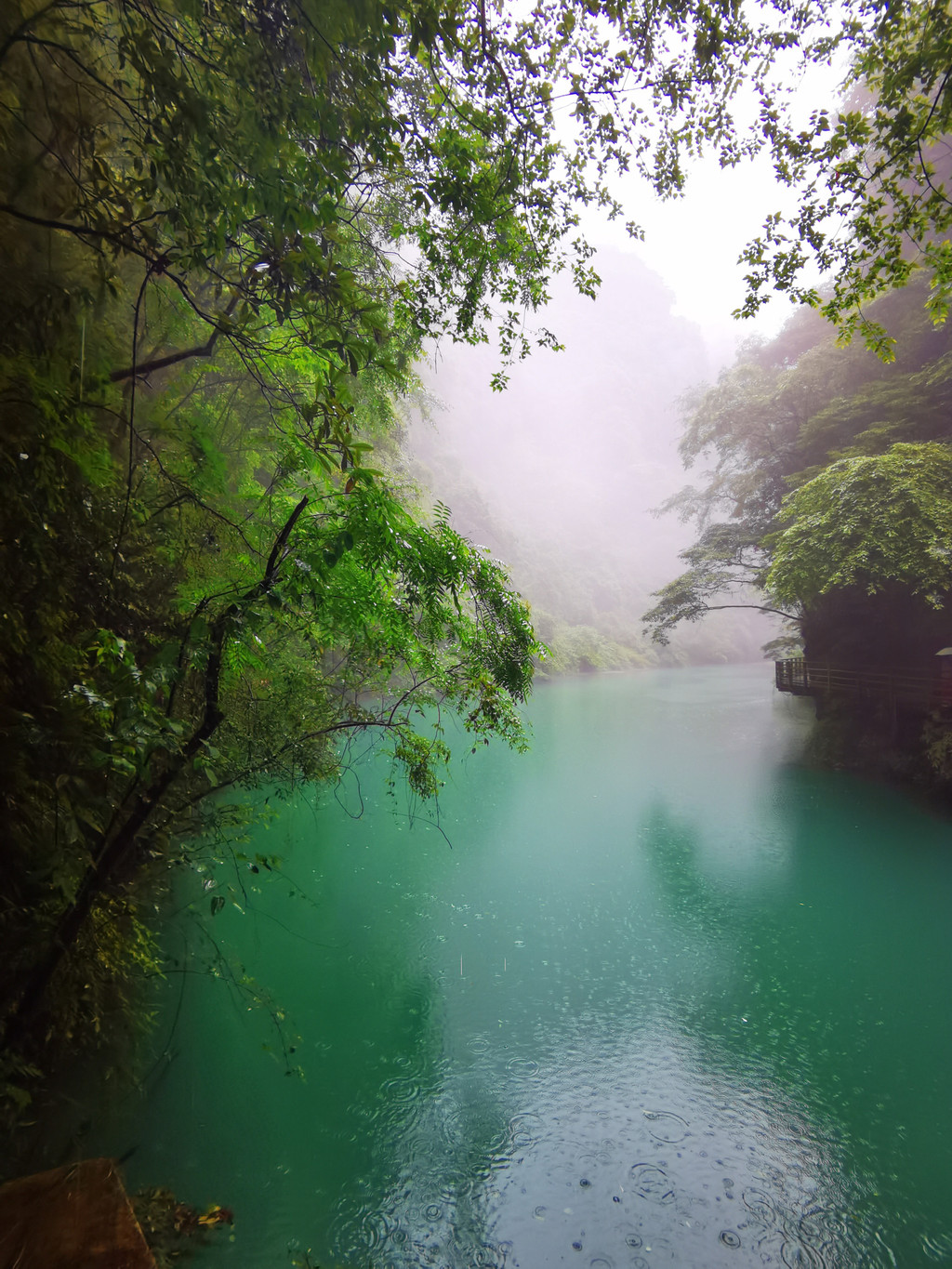 滑下后就是谷底了,顺着栈道一路走下去,风景很美,处处景色。走到尽头就是景区的游船码头,坐船游览最后一段路,就是大峡谷的最后一程了(费用含在门票里)。坐上船就可以联系我之前说的司机了,累了就直接回武陵源客栈,不累就去黄龙洞,都可以。