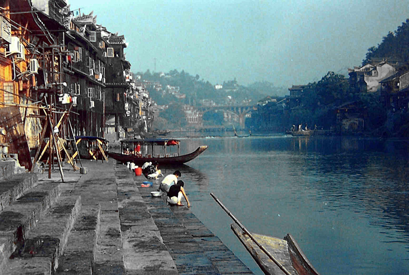 清晨的沱江边,沱江水哗哗流过,吊脚楼还沉浸在睡梦中,有薄雾萦绕在青瓦上。在河边青石板铺就的码头上,已经有着几位早起的当地居民,正用棒槌使劲槌着衣服,那清脆的槌击声,此起彼落地在沱江的清晨中回响,是如此清脆,如此动听,随着沱江清流,传向很远很远的地方……,那种与世无争、恬淡自在的感觉,真是让人慨叹万分,禁不住自问:人活着,究竟要过上怎样的生活才算不枉一生?