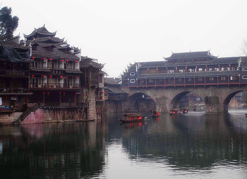 我第一次认识凤凰这个地名,还是在读书的时候,从同学那看到一本书——《边城》,为书中所描写的苗疆风土人情、秀丽的沱江景色而深深吸引。当时就想,有朝一日能去凤凰亲眼看看那翠绿的大山,清澈的沱江,淳朴的苗家姑娘,那该是一件多么美妙的快事,所以一直就有了这个心愿,在前年的夏天,终于成行。当时的我,怀着一份激动和向往,心底里在呼喊着:美丽而神秘的凤凰,我看你来了……。