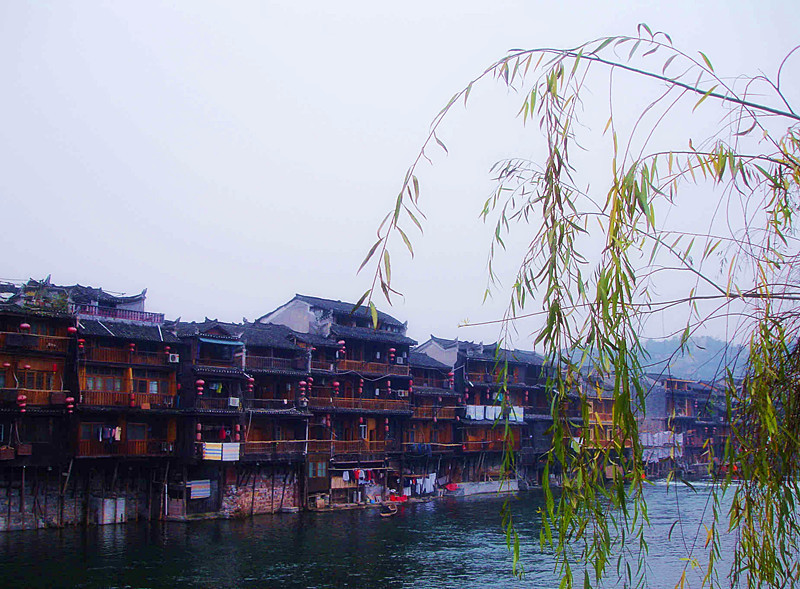 凤凰真的很美,沱江真的很美,尽管众多的远方游客来访把这里变得喧嚣,但岁月留给我们的仍是读不尽的厚重和看不够的美景。当你穿过两旁制作和叫卖姜糖的小街,登上高大的护城门,魂牵梦绕的景色跃然眼前:沱江边蹲着手抡木棒棰乒乒乓乓洗衣的妇人,江边密密麻麻的吊脚楼就像一大群苗家少女, 你挨着我,我挨着你,挤在沱江两岸,各自把身影投在水中。凤凰,真的很美。