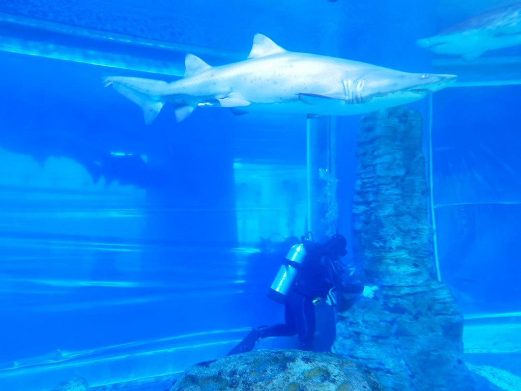 当我看到大鲨鱼的时候,内心是有一些惶恐的。我就是那种典型的杞人忧天者。在这里走着,最担心的就是海洋馆里面的大玻璃坏掉。所以,在逛的时候一边在欣赏海洋馆里面的一切,一边在紧张兮兮啊。