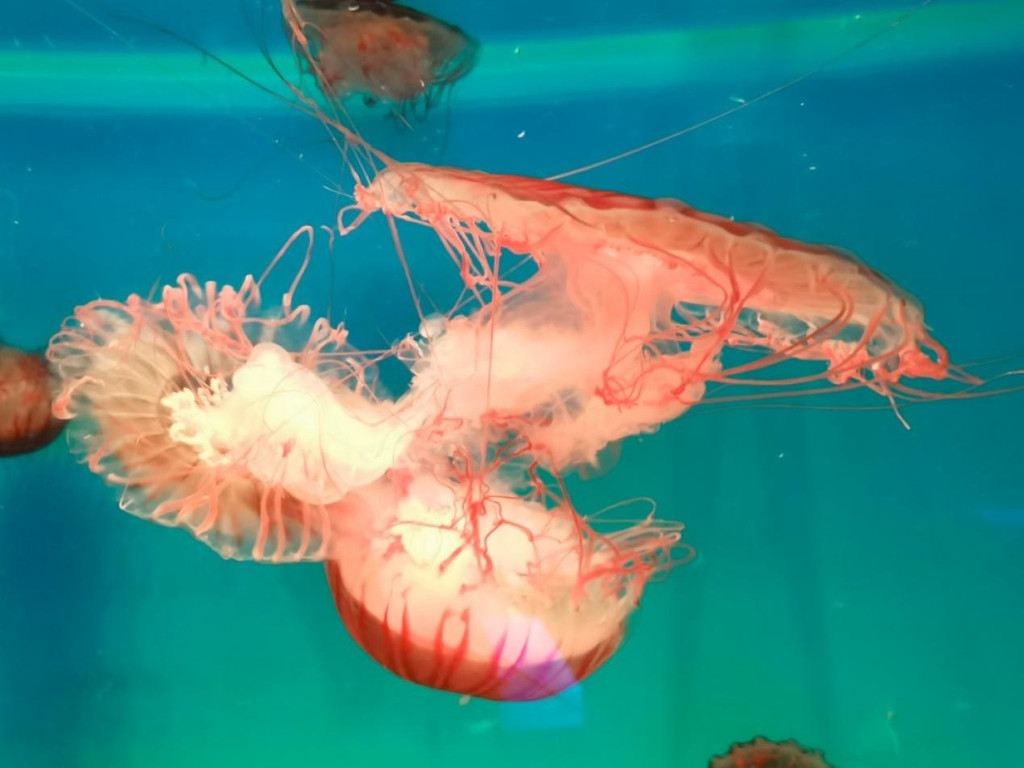 海洋馆里面的水母也特别多,我一直觉得,水母就是造物者的杰作啊。看看水母,那个带子超级超级长,而本身又很小,就好像是一个小精灵一样。