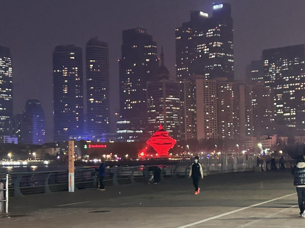 我们就住在了五四广场附近,这边人比较多。我们来的比较晚了,据说灯光秀已经结束了。算是一个小小的遗憾,安排妥当之后我们就去吃饭了。