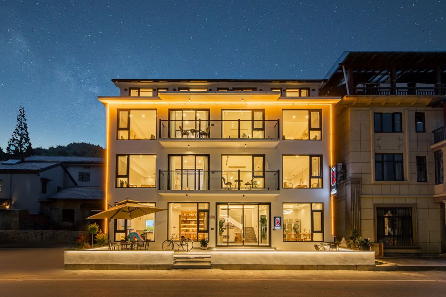 民宿地处山野之中,出门便可见这苍茫竹海的如画精致,门前月台处还设置有观景凉亭,闲暇之余,品茶观景,享受这神仙般的安适生活。进到民宿内部,一种岁月静好之感便油然而生,大气的现代田园风情,让您在这里能找到属于自己的归属感。