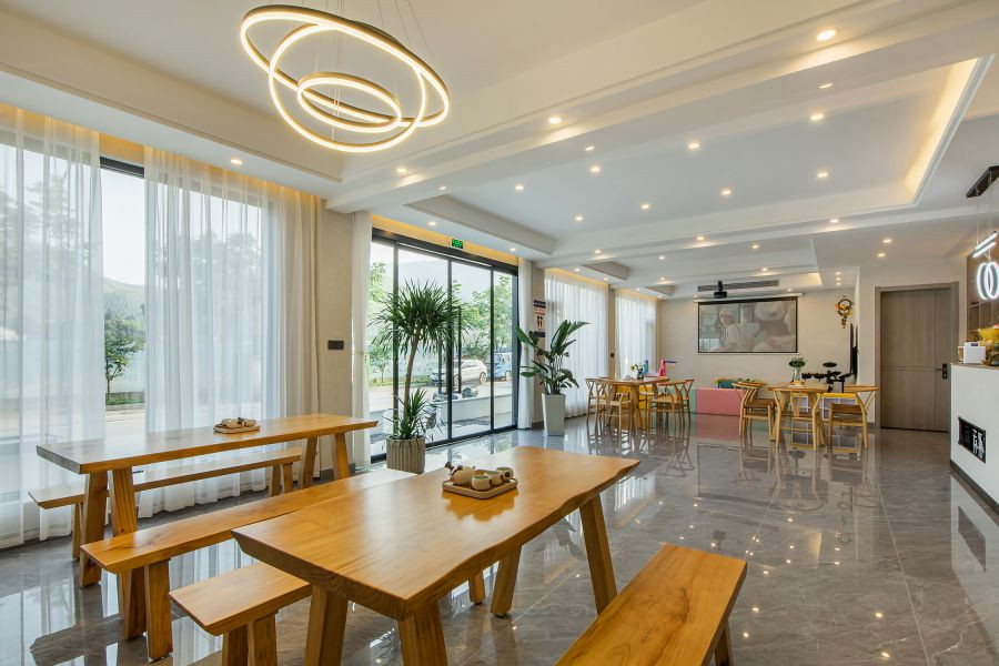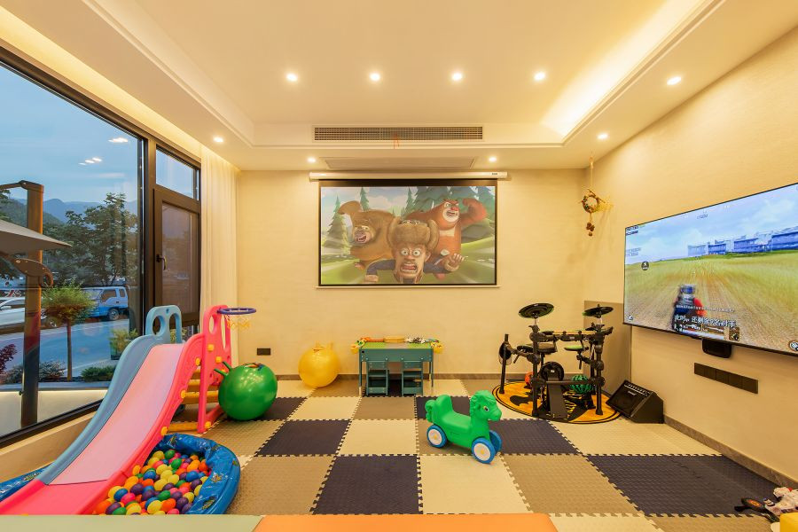 多功能会议厅、儿童娱乐区、麻将机等休闲娱乐设施是民宿内必不可少的娱乐设备,四楼还设有超大全景露台,这里轻松的氛围与绝美的山川美景实属难得。