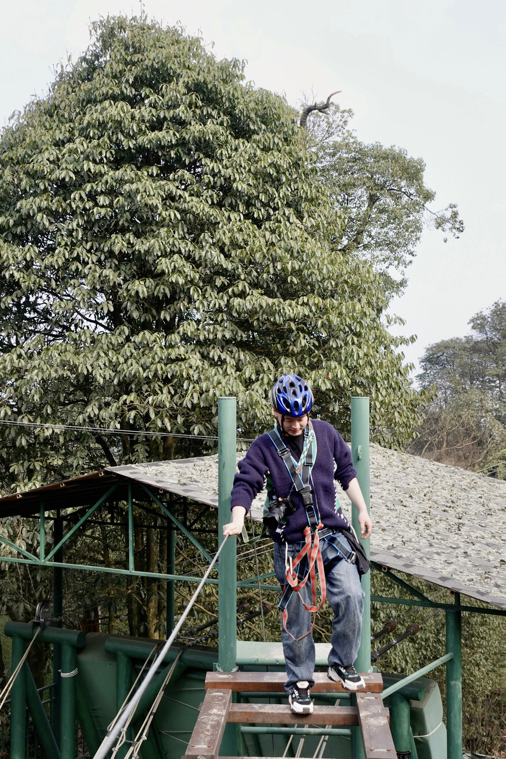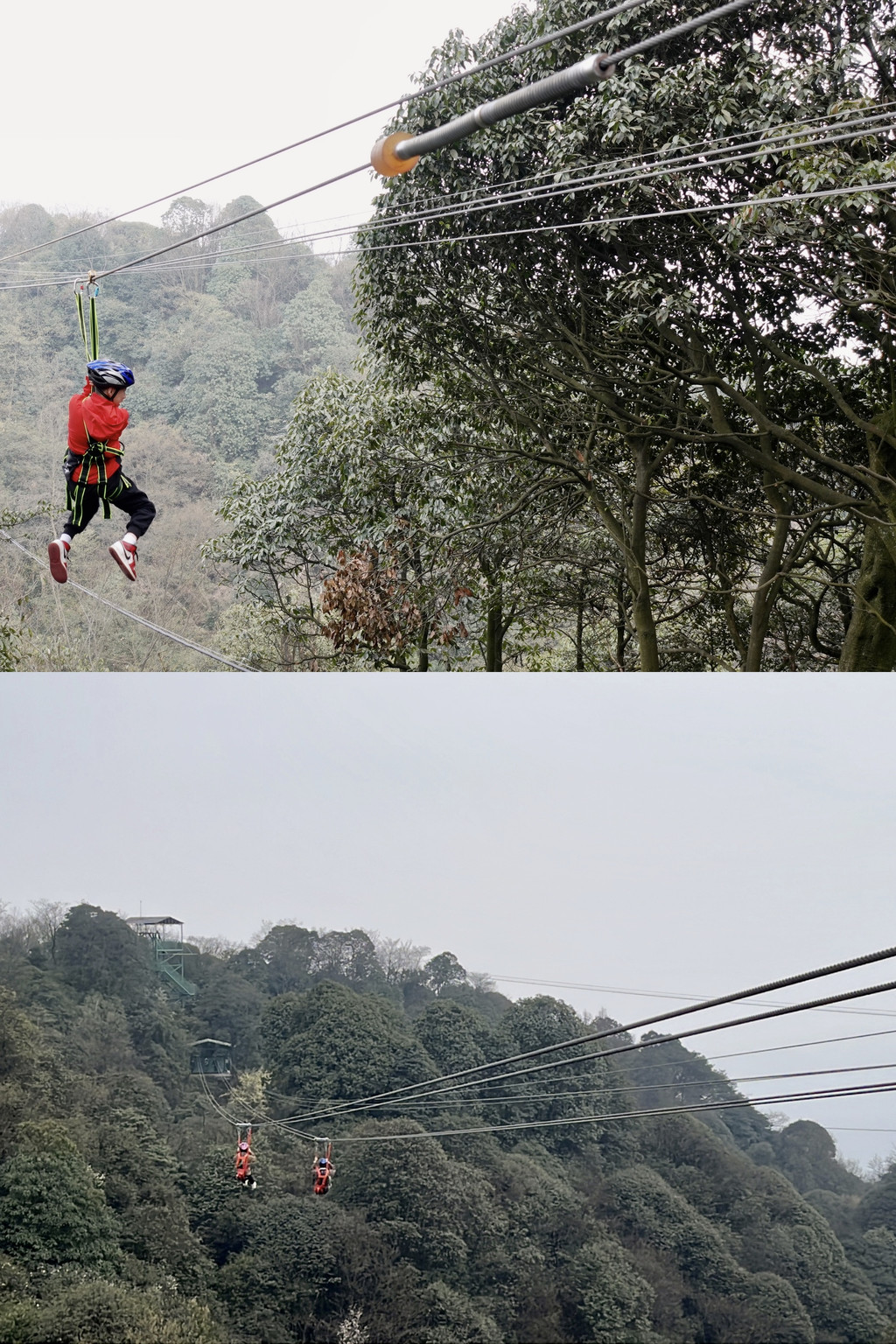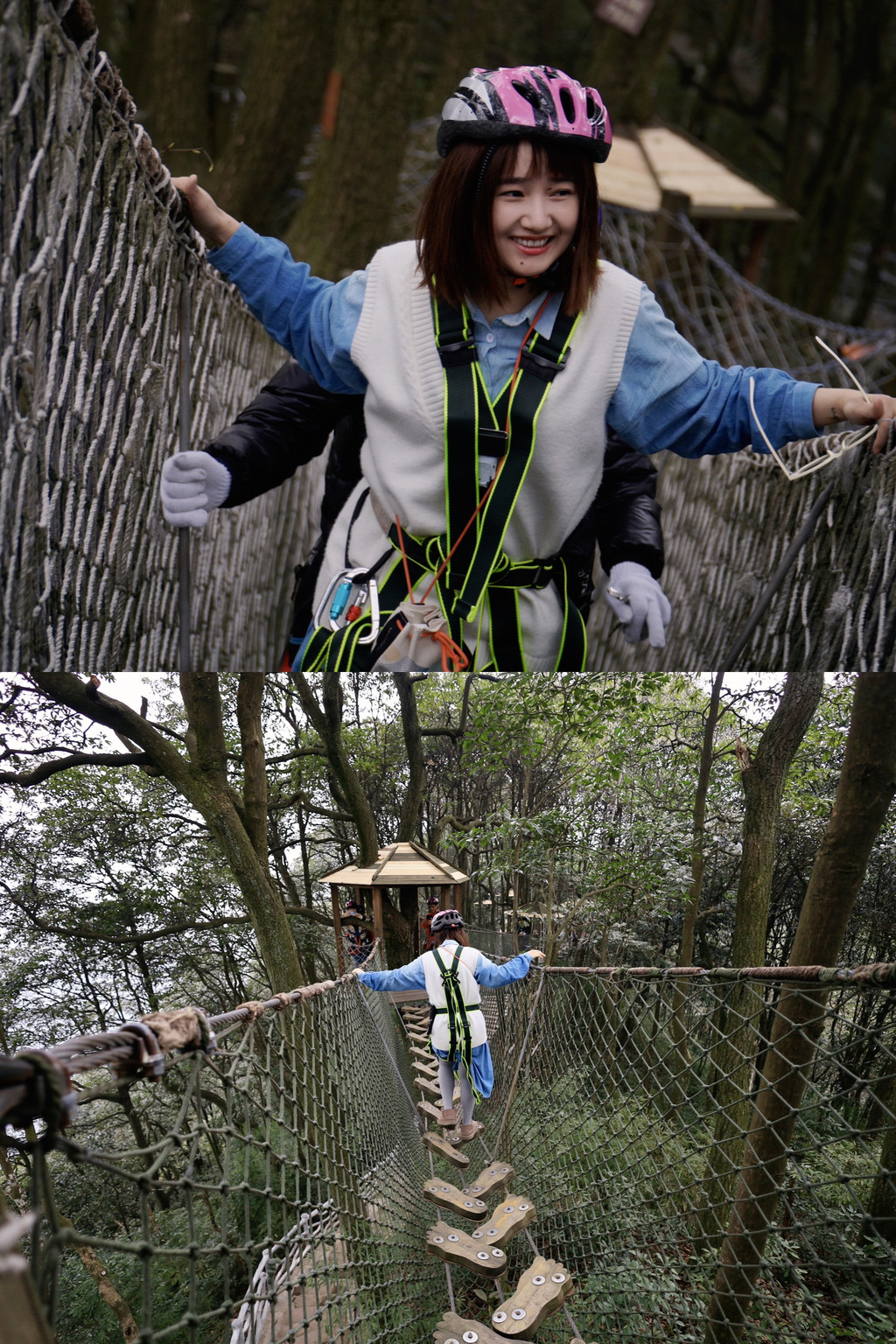 饭后散步爬山去“树冠项目”,体验丛林穿梭的乐趣。