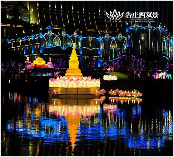 这次的灯展将在告庄滨江大道-罗摩岛-孔雀剧场展开,整个占地面积约36000平米空间里,有4大主题区域,共设35组灯组,面积之大,灯组之多,是不是已经让你眼花缭乱了呢?为的就是让你真切的走进灯展,感受傣泰文化。