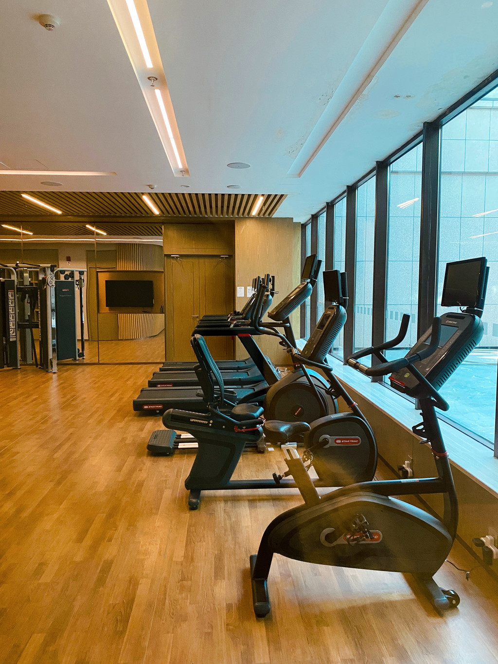 吃完喝完,来个健身:酒店的负一层是健身房,刷房卡即可进入,内部不算大,4-5个跑步机椭圆机,但是日常健身设施算配置齐全了(这个级别价格酒店不要指望有游泳池)不过令人惊喜的是,有配置男女更衣室,毛巾架也拜访的整整齐齐,吃完喝完来跑跑步真的非常不错了,对于有健身习惯的人,真的非常喜欢找带有健身房的酒店。