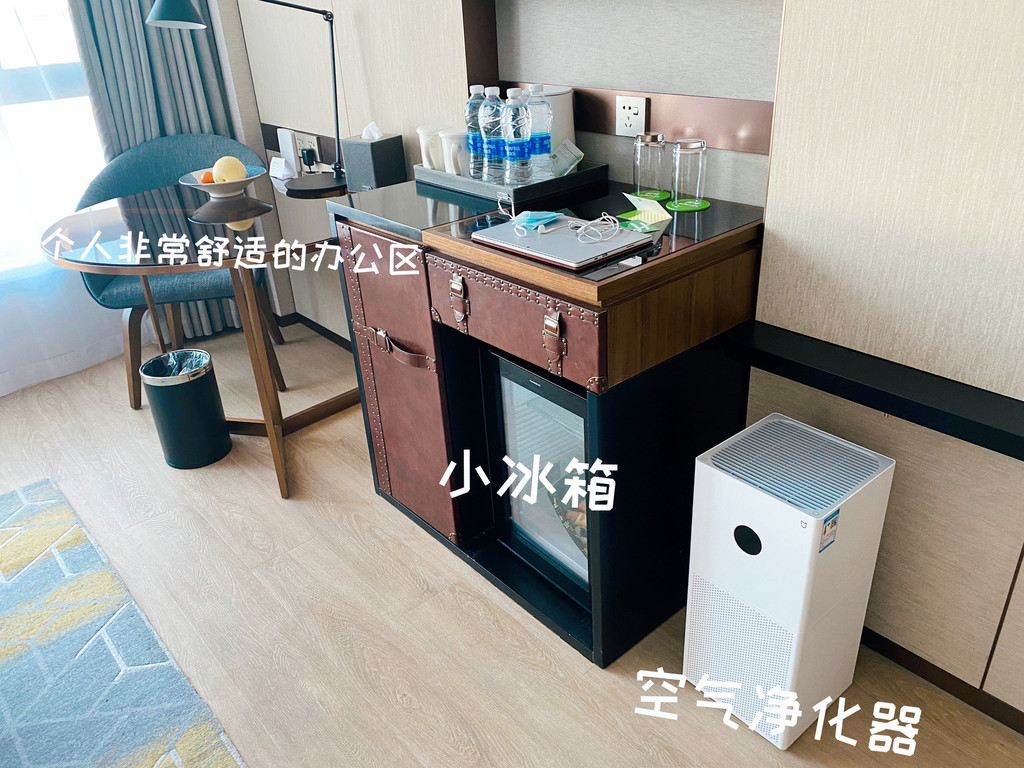 配置小冰箱、基本茶饮:酒店配置了小冰箱和基础冷饮及当地特色饮料,制冷不错(有的酒店冰箱制冷真的很一般,冷藏蛋糕都不保鲜);基本茶饮不多说了,如果连续入住需要补充冰箱饮品给酒店前台打电话就好。