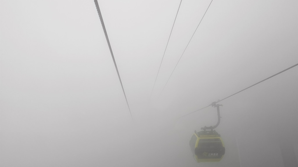今天早上大雾,还好没有下雨,索道一路上行,一片雾茫茫 。