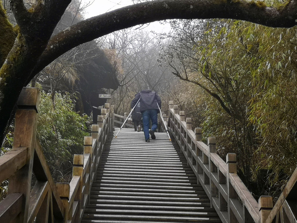 一路登梯,遇见一个拄双拐登山的残疾人,路途中还帮他拍了照片,后来在山上又遇见聊了几句,他说每年都会去一次西藏,心中一个佩服。