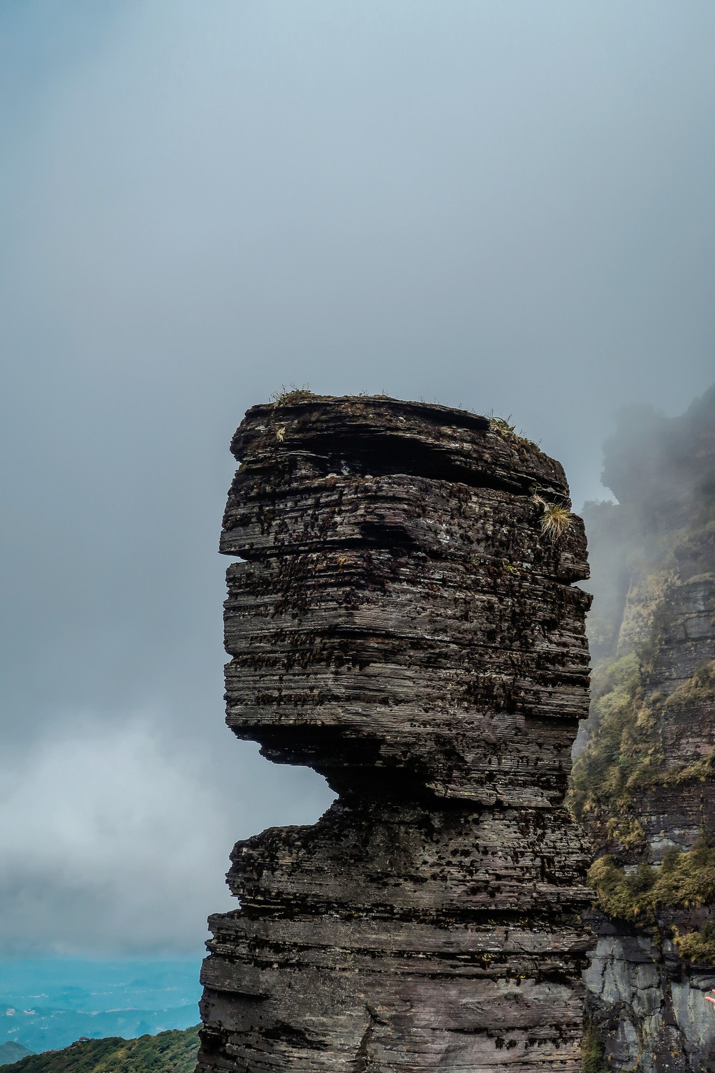 十余米高的蘑菇石,可是这里的网红石,太多游客都在争先恐后的合影打卡留念,由石英砂岩和板岩经长期风化和重力崩解作用而成的蘑菇石,看起来一层层的弱不禁风,像小朋友口中说的千层蛋糕,但实则却坚硬无比的巍然屹立于悬崖边。