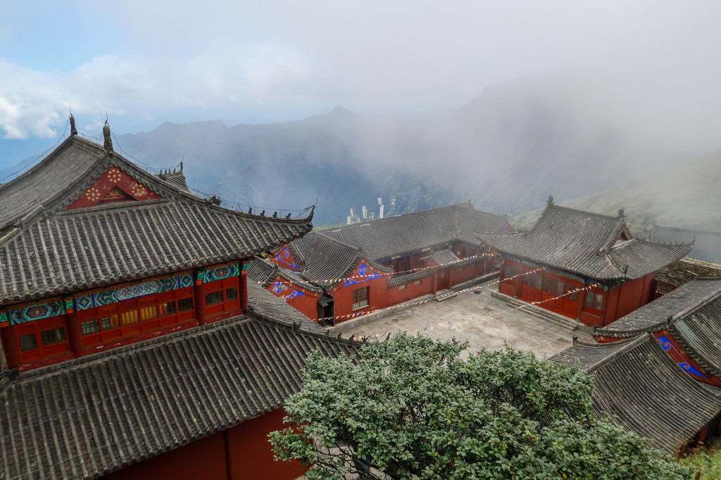 稍作休息后,就可以继续上路了,左手红云金顶,右手老金顶。如果体力足够好,两个金顶都可以去爬下,个人建议只选择其一就好。大多数人更倾向于去红云金顶,“红云金顶”谐音“鸿运金顶”,也象征着好兆头。