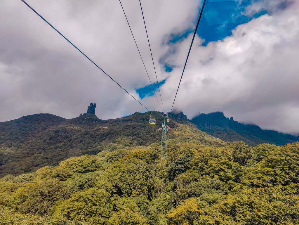 大概20分钟巴士到乘缆车的地方,上山缆车单程15到20分钟,根据实时的风速会调控速度,速度相对比较快但却非常安全,从高空俯瞰梵净山的美景也是令人心旷神怡啊,如果你是徒步高手,徒步上山也需要至少4-5个小时,所以时间和体力不充足的情况下,还是建议坐缆车会更舒适一些。