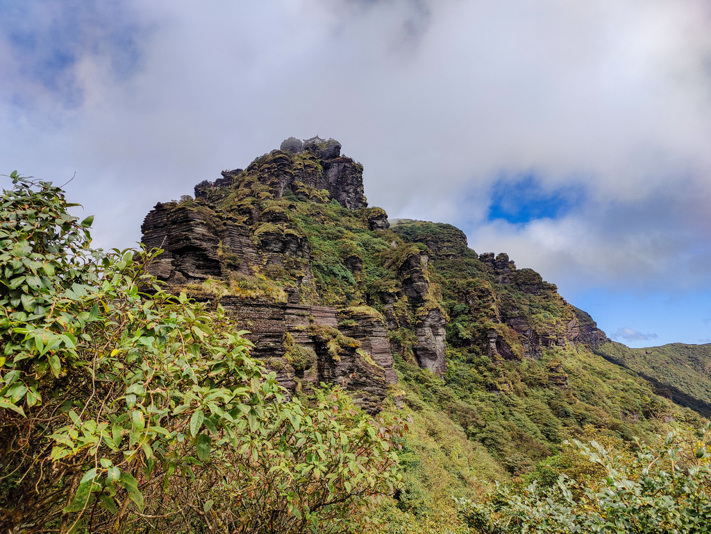 事实上梵净山也是湖南武陵山脉的一部分,而且最高峰就在梵净山海拔2572米的武陵山主峰凤凰山,上行过程中就能看到这座主峰。