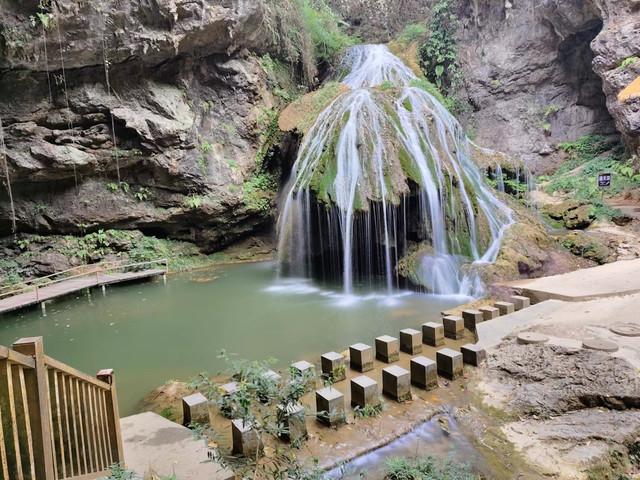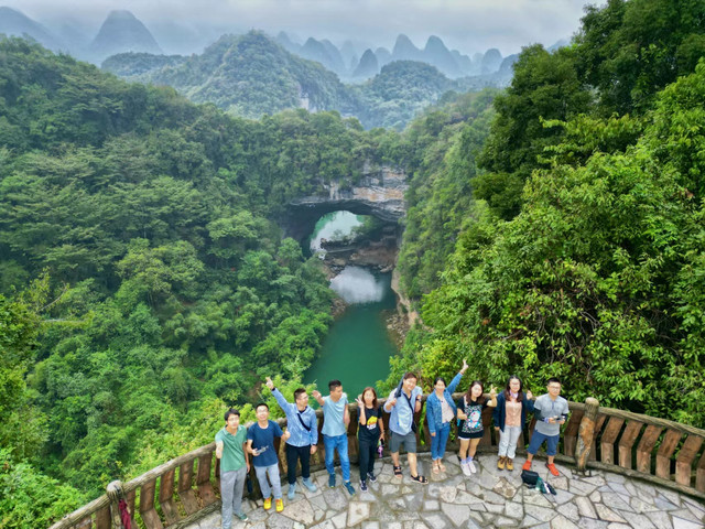 早晨起床是下了小雨的,出行以来的第一场雨。7 :30在酒店斜对面的“杨姐粉店”吃了早餐,第一次吃炒伊面,带点甜挺好吃的。饱腹后前往中国最美地质公园-香桥岩溶国家地质公园(门票40)游玩。8:45到达景区,其实是不必要买车票进入的,开进去了也是放在景区门口右边200米的停车场,因为不知道情况所以我花了冤枉钱,门口的车位还是挺多的。景区不大,游玩时间2.5小时左右。这里的河水可媲美小七孔,溶洞也是值得一去,讲解员讲解的详细认真,思想和眼神随她而动,去过很多溶洞,从来没有这么认真的欣赏过。往回走的路有个观景台是这个景区的重点。