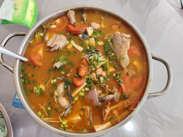 11:30大家集合出景区,在西门口镇子上吃的饭,为了弥补前一晚没能吃上几口的鱼,又吃了顿酸汤鱼,人均60元。