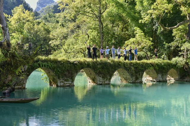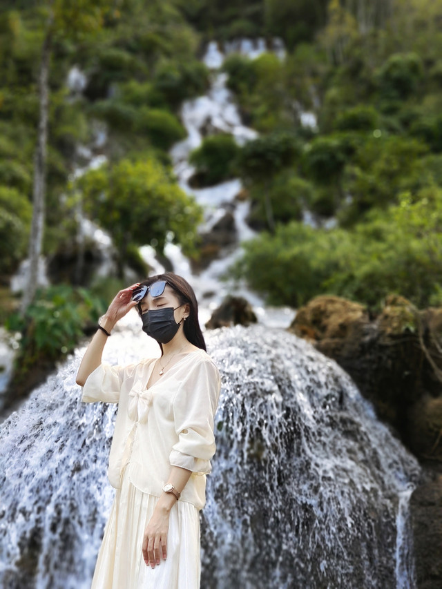 小七孔景区里面也是比我想象中的大很多,生态保护的很好,山清水秀,到处都飘着负离子,队员说吸一口肺都能绿的那种,还有不少我没见过的昆虫,也着实新奇,这是我在广东任何地方都看不到的。看到如此美丽的景色,队中的靓女们也是各种拍摄。我们先去的天生桥后坐园内车一路往西门方向游览,这个两天的票价还是很值的,景区绿树成荫,湖水清可见底,瀑布水流湍急很是壮观。小七孔建议凉鞋游玩,翠谷瀑布位置可以戏水,水质清澈冰凉别有一番滋味,这里的瀑布位置也是能出大片的拍摄点。