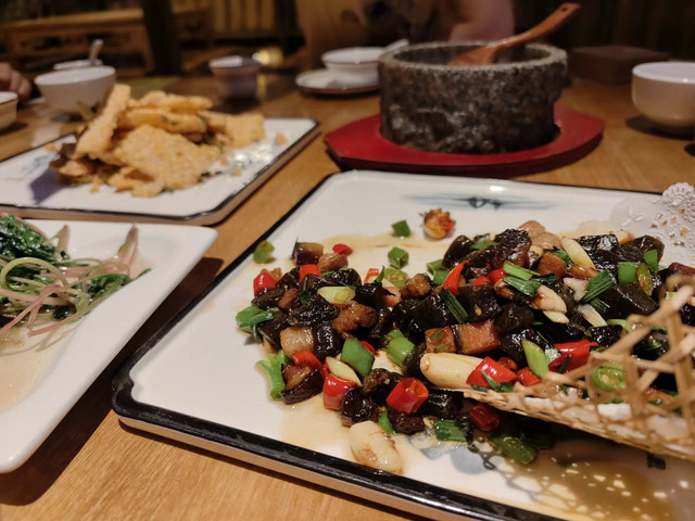 经历了一番波折换上了备胎,随后找了维修点进行补胎,吃饭是在“梵净印象土家文化主题餐厅”,味道不错,蕨根豆腐让我印象深刻,人均60元。