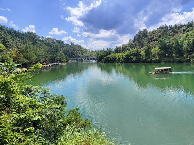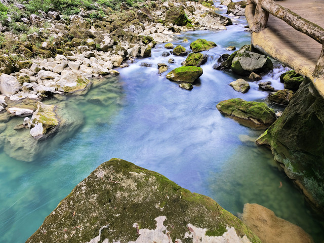 吃完午餐大家集合进入铜仁大峡谷(携程门票98元),不得不说自然环境真的很好,但是因为今年贵州干旱严重,河水不深,水还是很清澈的,宝石般的碧绿,如果允许真有下去游个泳的冲动。景区现在有些地方是关闭状态,3个多小时便逛完景区,下游位置的铁索桥也是没有开放的。