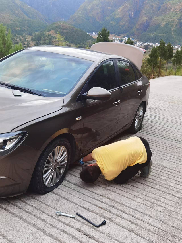 为了追逐日落无人机找了条上山的路,但山路坡度很大,车辆满载状态,转弯处高低不平,轮胎打滑,结果车胎被石子刺穿,没能完美的拍到日出,如果是四驱越野是绝对能上到山顶平台拍摄完美日出的,这也是我这个8年老司机第一次自己动手学习换备胎,又开启新技能了。