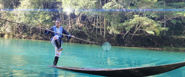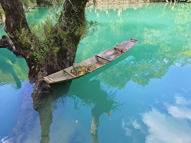 早上景区里面的卧龙潭是水清粼粼的,如丝绸般滑过,非常值得一看,如果不是赶行程真想坐上个把钟的。还有幸遇到了贵州一郎,船技真是相当了得,一大早就让我们欢喜了一把。队员是激动过度为了拍照也是拼了,为这事真是笑了几个钟。