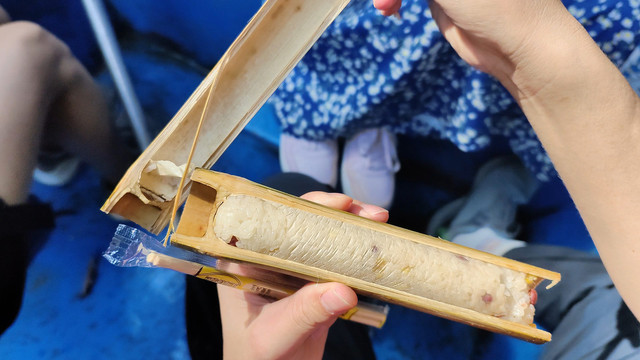 随后又去往鸳鸯湖划船,4人1船挺费力的,船上还遇到卖竹筒饭的村民,手工做的新鲜竹筒饭很香很香,也可能我划船饿了吧。。。