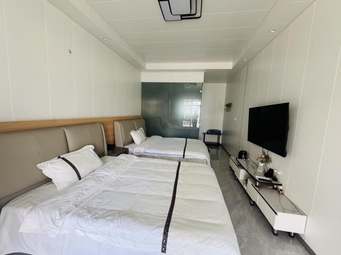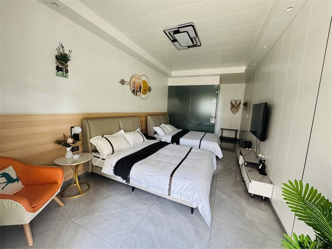 房间设施:酒店共40个床位,客房有双人间、三人间、四人间、家庭间等不同规格,统一的酒店式布局装饰,设施一应俱全,设计风格现代,独立卫浴,不管是适家庭,情侣,亲子,团队都能选择到适合自己的主题房型!酒店民宿一楼属于高端房型设有大床房,家庭房,双床房!
