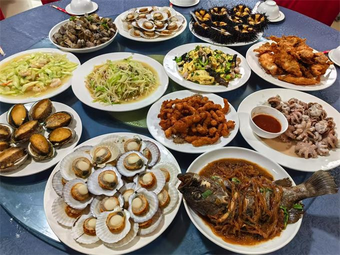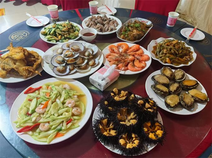 餐饮美食:就餐的宴会厅,干净卫生的就餐环境,可同时接待500余人就餐。来到海边,一定要吃的就是海鲜,正宗的渔家风味,物美价廉。为您提供獐子岛优质的鲜活海鲜,刺参、皱纹盘鲍、梭子蟹、虾夷扇贝、海螺、海胆、生蚝、皮皮虾、以及各种石斑鱼、海鱼,种类丰富且价格实惠,地道的海岛渔家风味菜品,一定让您大饱口福。