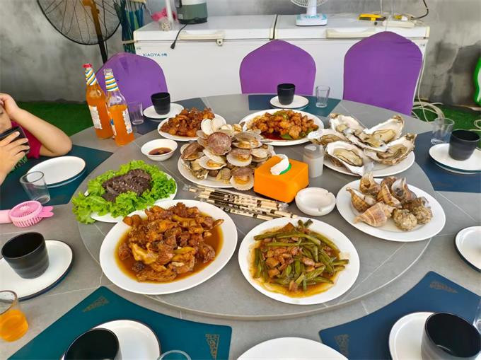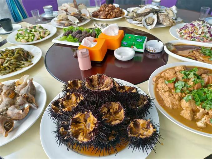 餐饮美食:餐饮丰富,民宿吃的相当丰盛,4人餐也能提供6-10个菜,餐桌菜品丰富,海胆、鲍鱼、蛤蜊、生蚝、海螺等海鲜,还有肉类菜肴,份量和诚意直接拉满,每道菜都还挺有当地特色,感觉光冲着这餐食去住都值了!