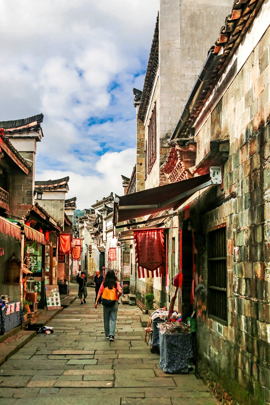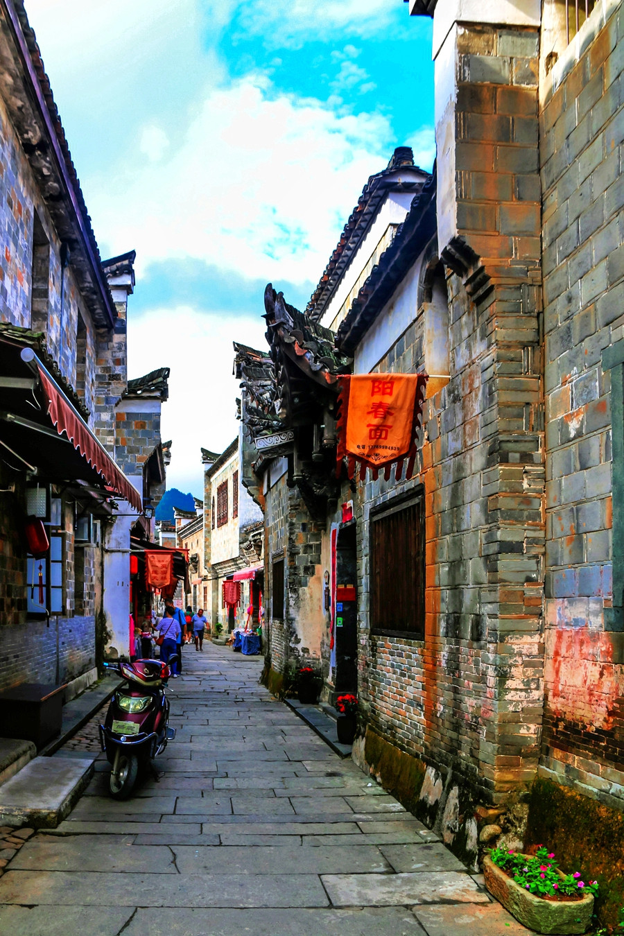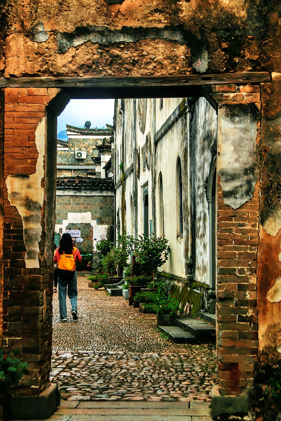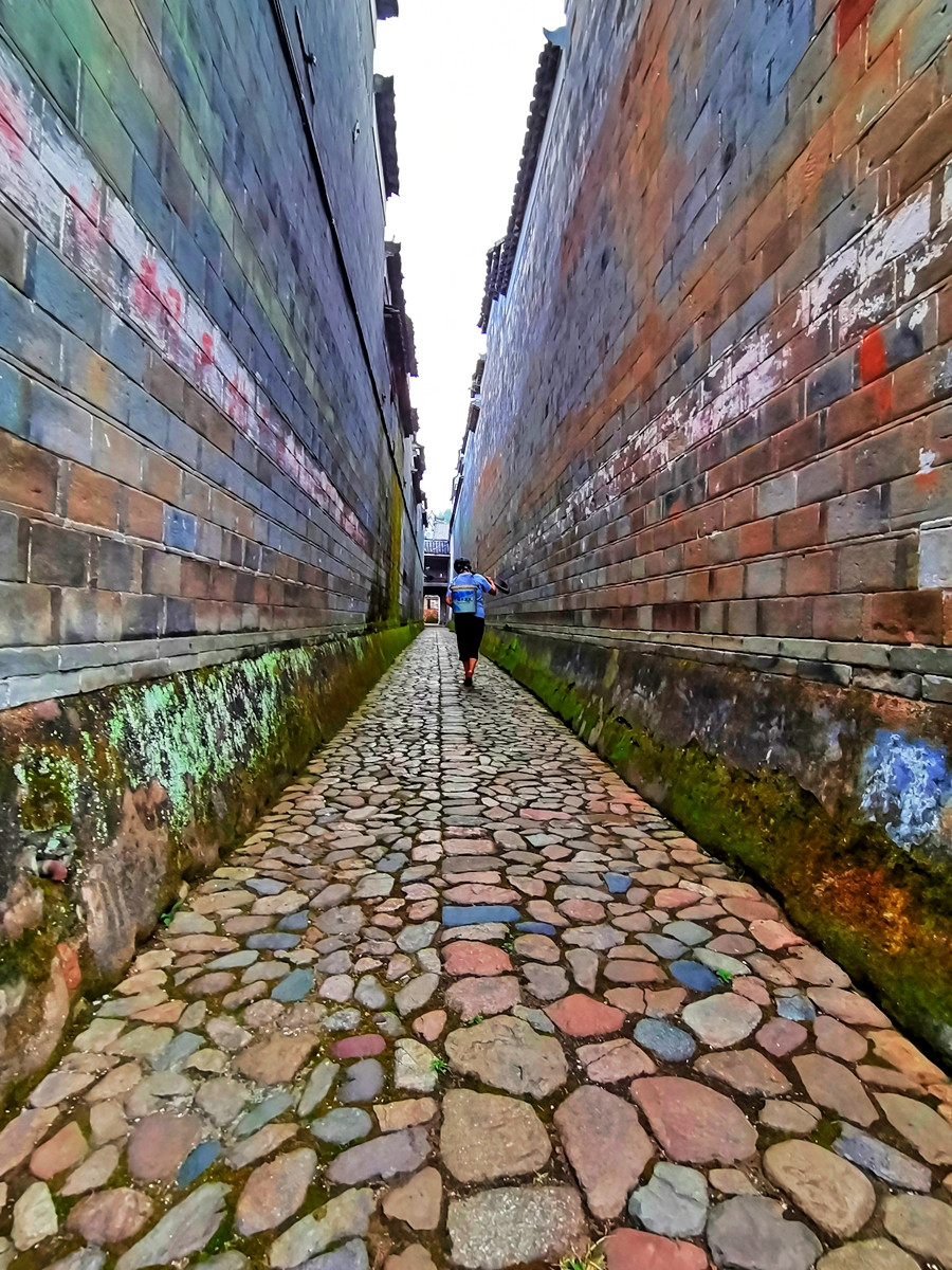 两边高大的马头墙,狭长的巷子仅容两个人走过,大声说话都会被高墙给反弹回来,“嗡嗡”回响,故而又被称为“回音壁”。
