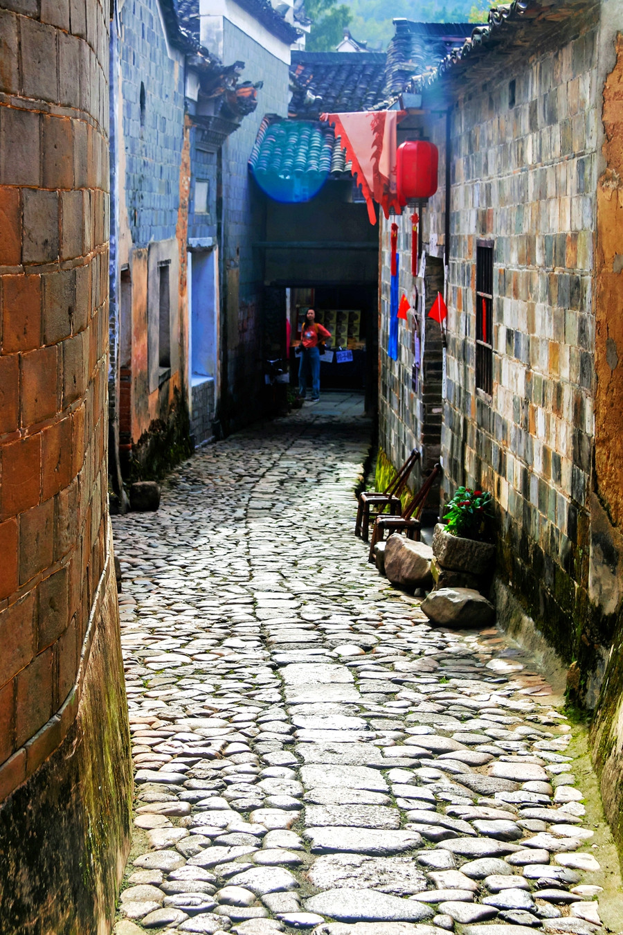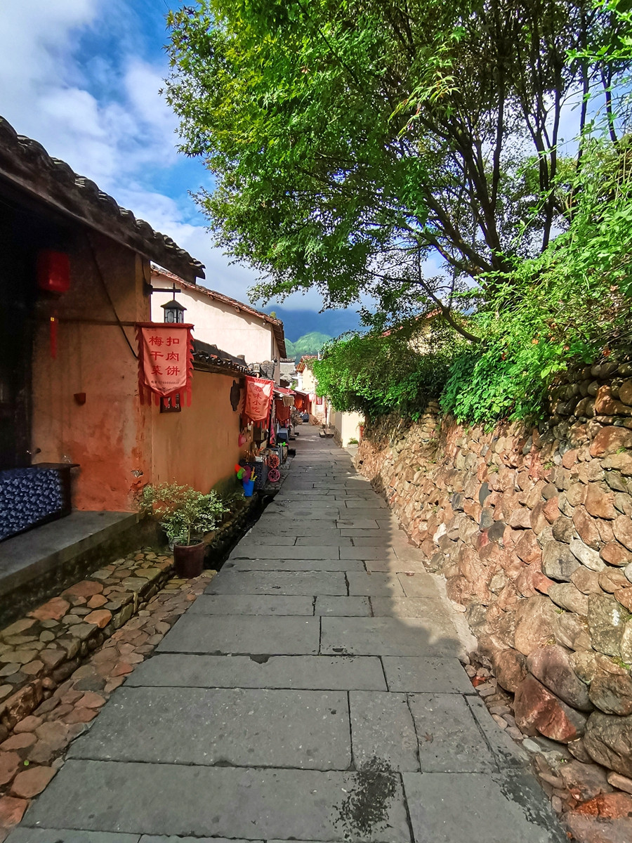 除了主街是青石板砌成外,其他的小巷都由鹅卵石铺就而成。在小路的尽端,有一方言姓氏名人馆可参观。