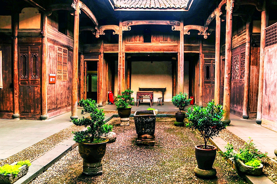 这是一座带有历史韵味的老宅院,里面的房屋、天井,古建筑风貌依旧。每个庭院都有不同设计风格和历史的痕迹。