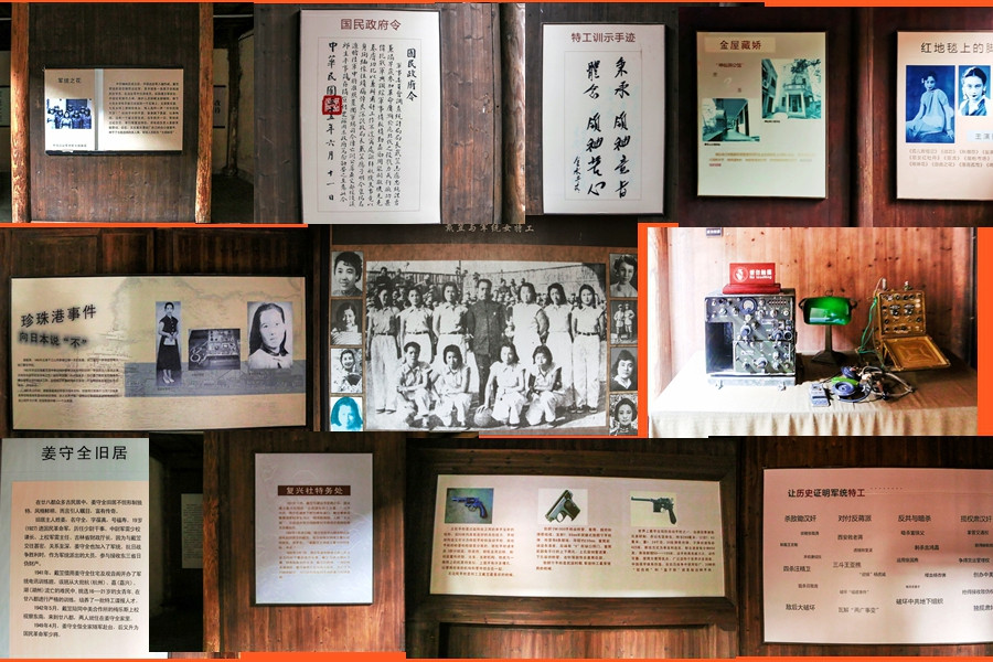 军统女特工大多是戴笠的江山老乡,这里展示着许多国民党时期的军服、旗袍、兵器以及工作学习的细节介绍。这些使得古镇有神秘之感。