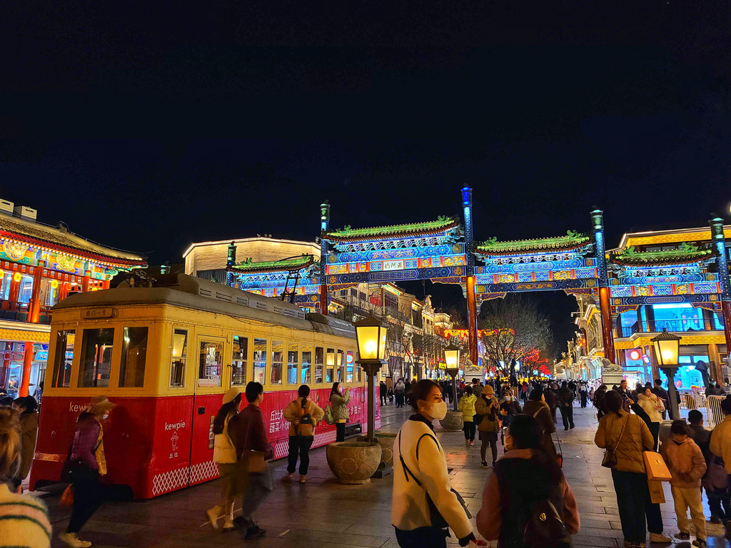回程有点小心思,前门大街有东长安街夜游铛铛车,票价30。仔细研究公交线路后,找到1元平替的5路公交车。前门站上,途径广场东侧路-长安街-南长街。公交车走最右侧车道,座位高,无遮挡,亮灯后的国家博物馆和天安门,一览无余;也可以看到左侧的正阳门、天安门广场、人民大会堂、国旗等等。北海南站下车,步行几百米还能打卡灯光照亮下的故宫西北角楼。