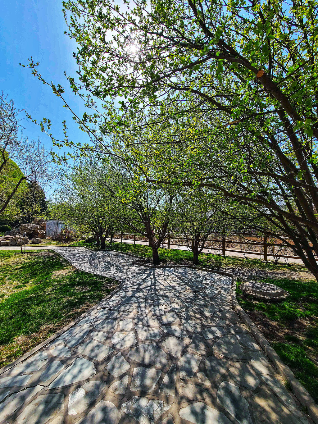 奥森的山桃盛景已过,只有几处榆叶梅、山杏、紫叶李、樱花和连翘点缀偌大园区。