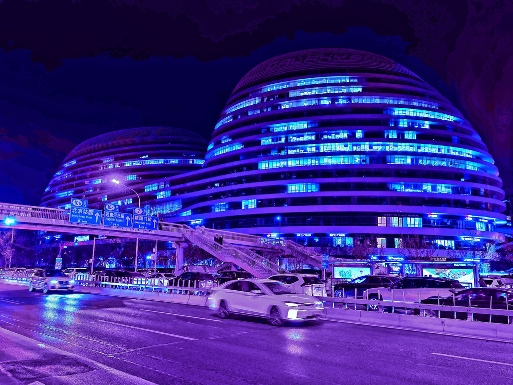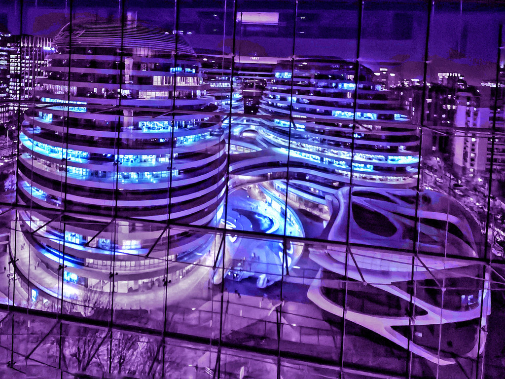 银河SOHO,可惜晚上没有亮灯,只有办公室的灯光,失望。