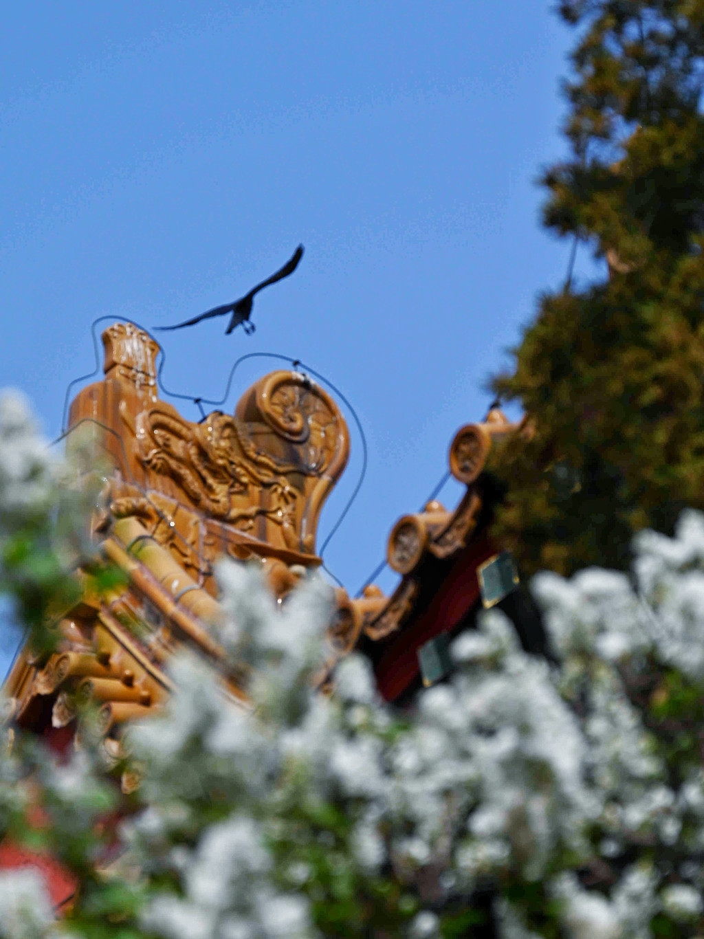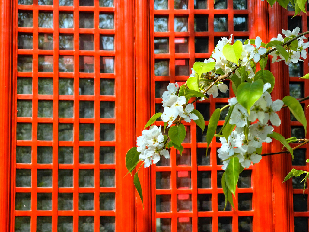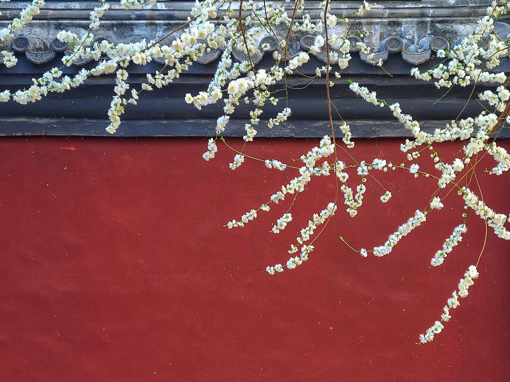 好在游人极少,红墙、青松、娇花,可以慢慢拍。